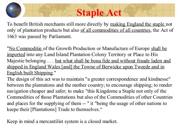 Great britain imposed a policy of mercantilism upon all of its colonies. One of the reasons england developed the colonies under mercantilism was to increase its trading territory. Mercantilism was an economic system of trade that spanned from the 16th century to the 18th century.