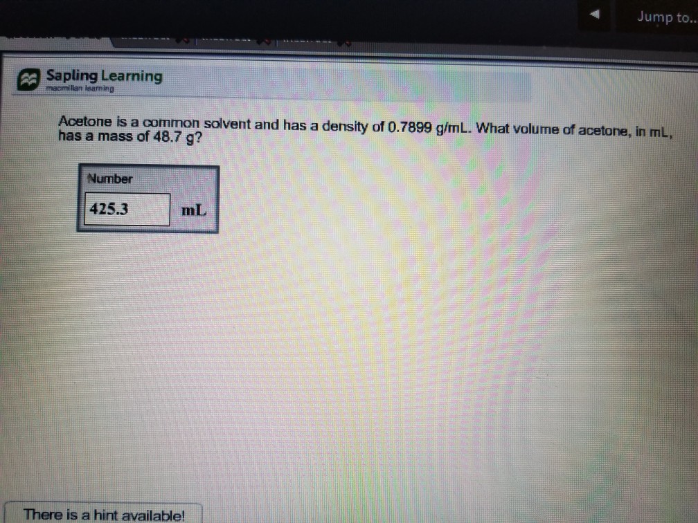 But due to the fact that the volume is in ml units and the thickness is in g/cm3. Learn this topic by watching density concept videos frequently asked questions what scientific concept do you need to know in order to solve this problem? What is the mass, in g, of 28.56ml of acetone?